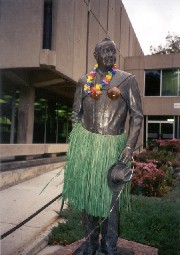 Tutt Library, Colorado College, 1994-ongoing. Students dress up the statue of Charles Leaming Tutt, Jr. (“Chas”), for whom Tutt Library is named. The statue was installed in front of the library in 1992. The earliest CC Archives photograph of a statue decoration is from 1994. Many more images at www.flickr.com/photos/tuttlibrary/sets/72157627707737080/.