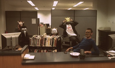 When librarians act silly for no reason, those are some of my favorite kinds of library shenanigans. Well, I also like it when the students or patrons act silly for no reason, too. Here we see some librarians in animal masks at Columbia College. How long this lasted, I do not know. Thanks, Kristy Bowen!