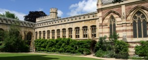 Not to be outdone by the parading of goats through Seny Hall, nor the wearing of Cat-In-The-Hat hats at the Snell Dinner, a group of Balliol’s finest and most intrepid – with the aid of a crane hire establishment – removed Doctor Quinn’s revered conveyance during the Finals Dinner to a new and glorious parking place, atop the Balliol Library, its front wheels perched upon the stone rail which surrounds the central tower above the fourth floor.