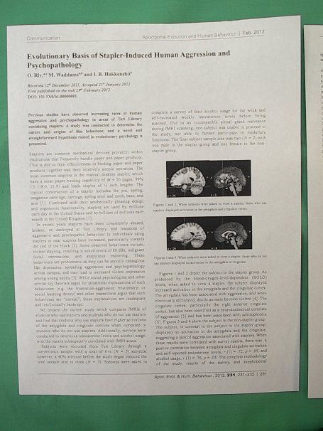 scientific paper on staplers and human aggression