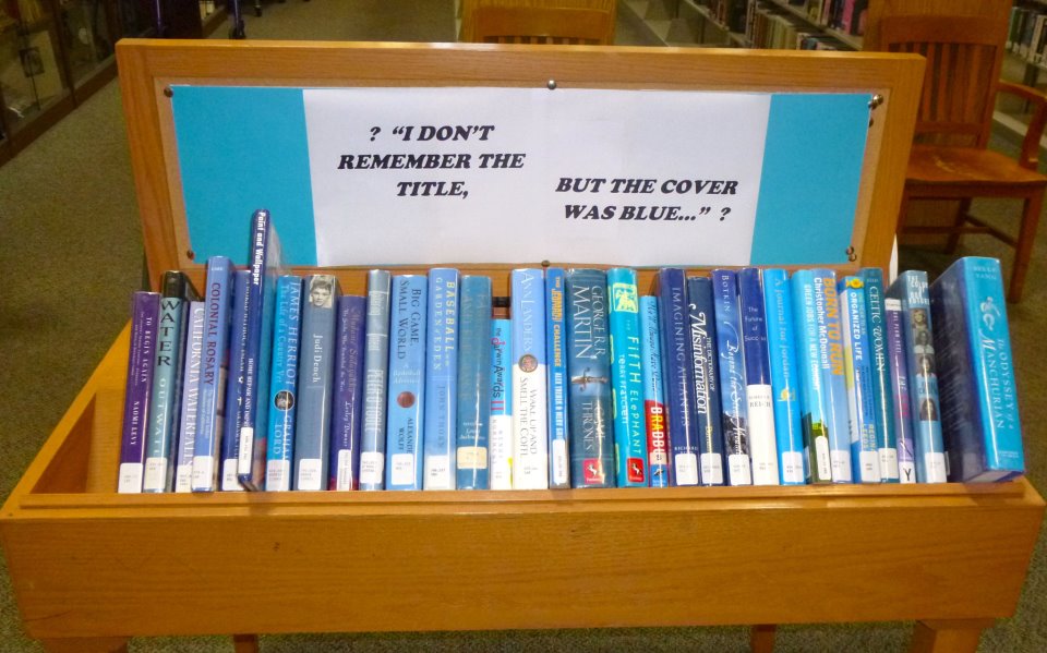 An unknown library created this display to help those patrons who can only remember the color of the cover of the book they wanted. Thanks, Lynne Thomas! Lots more funny library stuff at The Library News on Facebook. One commenter draws our attention to a related video, “The Confusing Library” by The Two Ronnies.