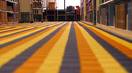 Northern Illinois University Library, ca. 2000. Students claim that the old library carpet, with its gold, orange, and black stripes, causes seizures. Some students enter the library in an “altered state” and stare at it. More information here. (Thanks, Lynne Thomas!)