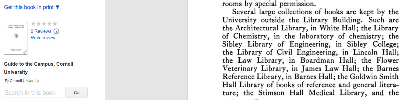 Why does this count as a library shenanigan? Jonathan and I are glad you asked. As this Google Books screen-grab shows, Goldwin Smith Hall contained a small reference library in 1920.