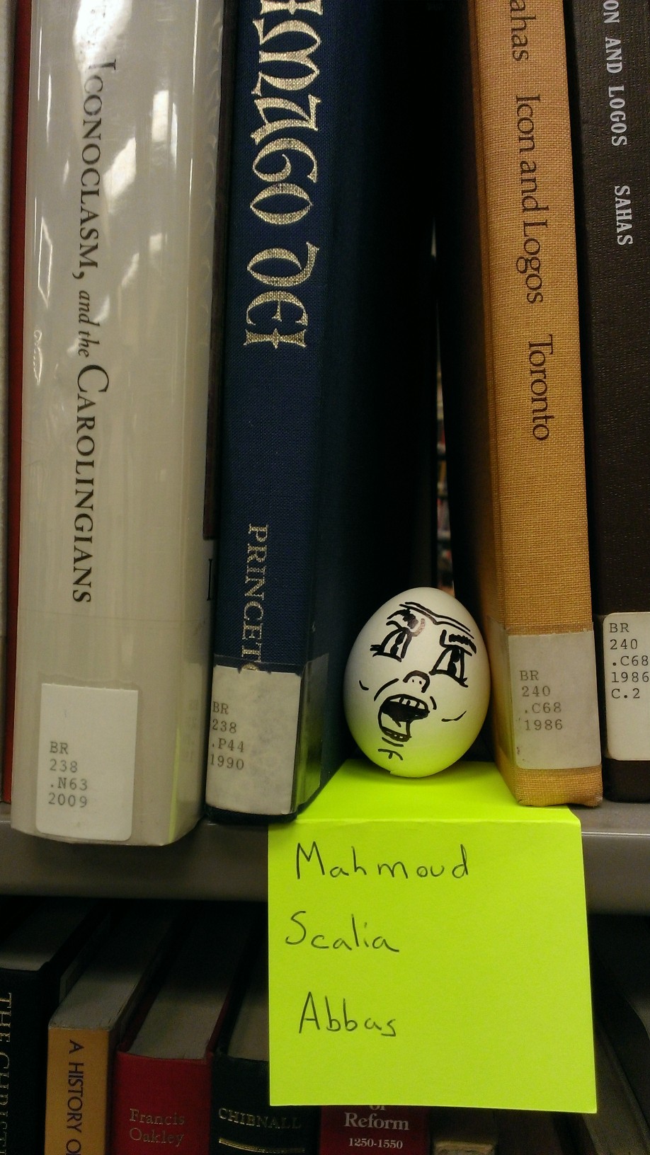 Circulation staff at Colorado College’s Tutt Library have found a couple of decorated hard-boiled eggs on bookshelves in our stacks. We’re not sure who’s behind this, or how long it’s been going on, and you know we’re all for library shenanigans in general, but this one has some potentially yucky consequences down the line. We humbly request: if you want to hide eggs in the library, could you maybe use plastic eggs, or blown eggs, or, you know, any kind of non-smelly, non-messy egg-like items instead?